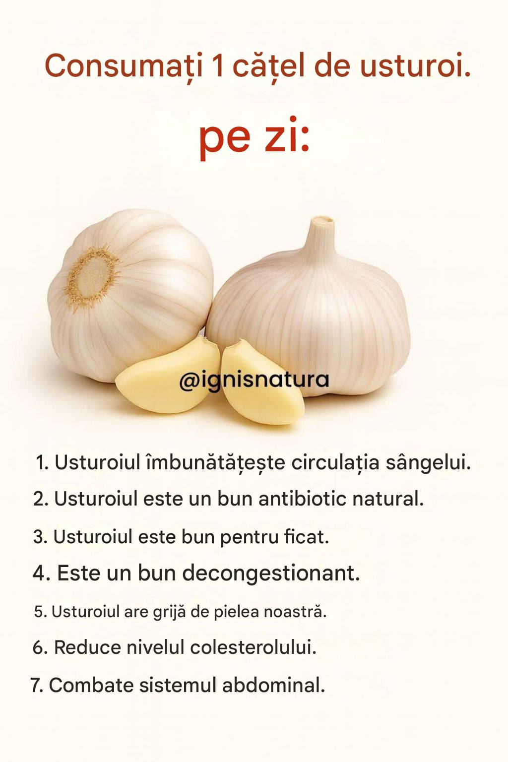 Usturoiul a fost apreciat timp de secole pentru proprietățile sale naturale. În diverse culturi tradiționale, a fost folosit ca supliment alimentar pentru a ajuta la bunăstarea sistemelor respirator, digestiv și imunitar. Deși nu înlocuiește niciun tratament medical, utilizarea sa zilnică poate oferi beneficii interesante.