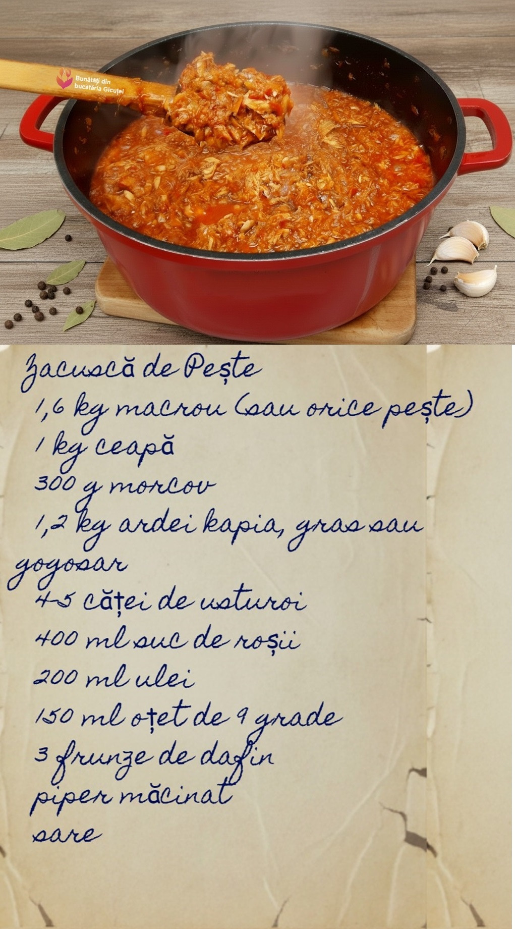 Dacă încercați rețeta mea de zacuscă de pește sau oricare altă rețetă de pe blog, vă aștept cu drag să-mi spuneți cât de mult v-au plăcut. Sugestiile voastre sunt binevenite; omul cât trăiește, învață.